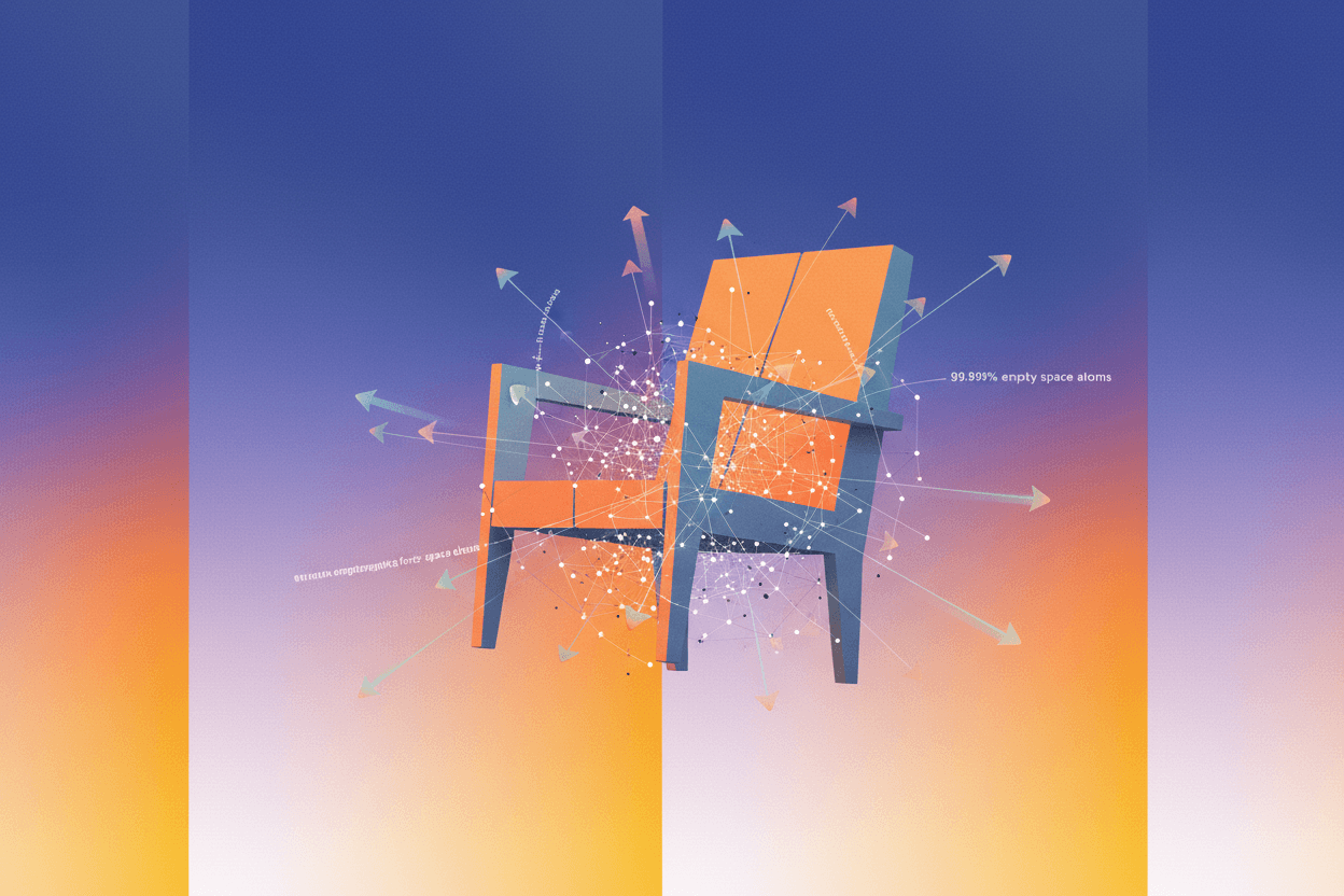 The chair beneath you is 99.9999999999996% empty space. Discover why electromagnetic forces, not matter, make solids feel solid. A physicist explains the void.